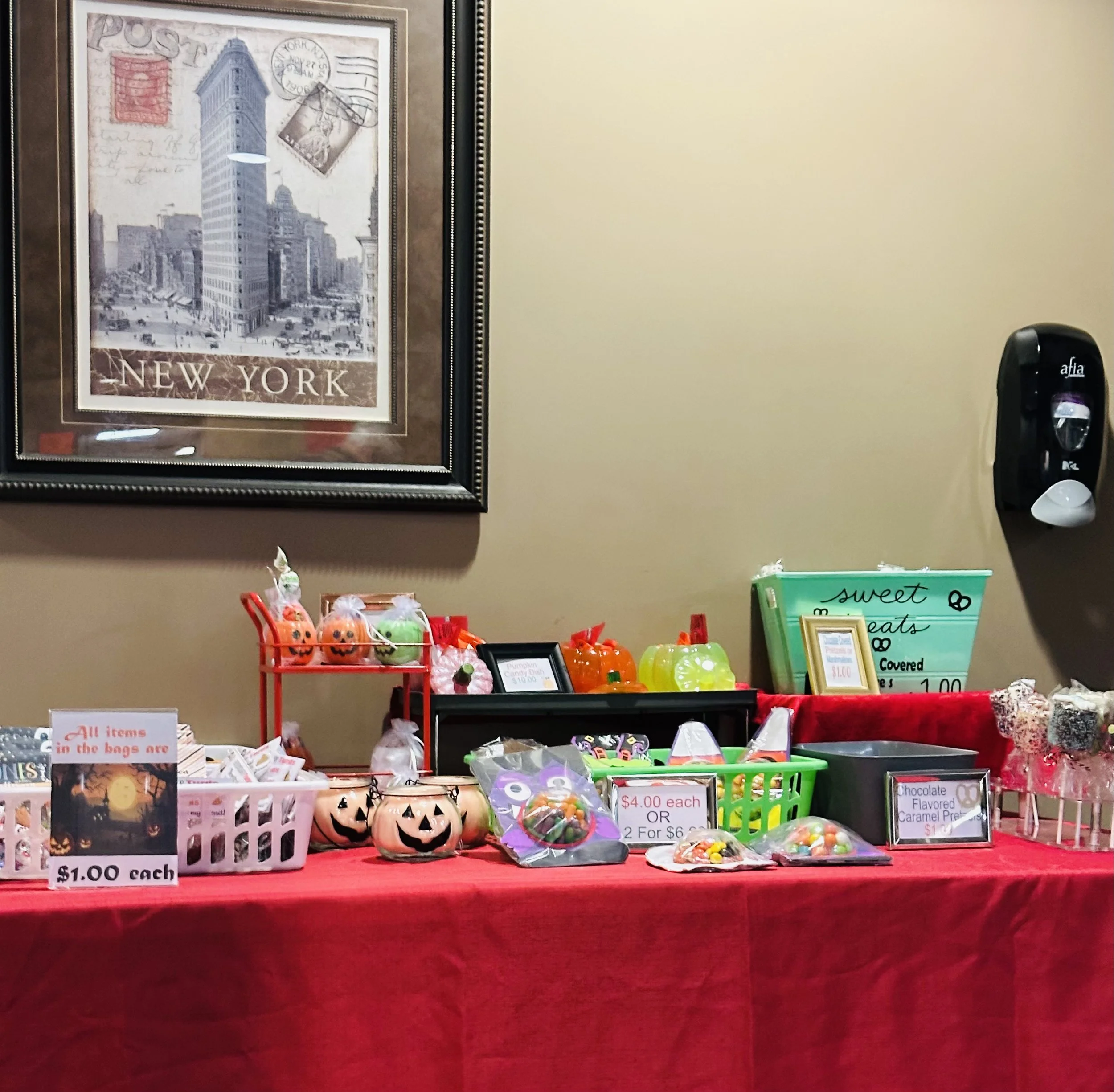 On a recent doctor’s appointment trip for my mom I had to take a picture of the display in the office waiting room. See the red table covered in candy treats? These were all of sale!!! Yes, it was a waiting room filled with old, overweight, inflamed patients and they are being candy countered because it is October? Serious, you can’t make this stuff up!