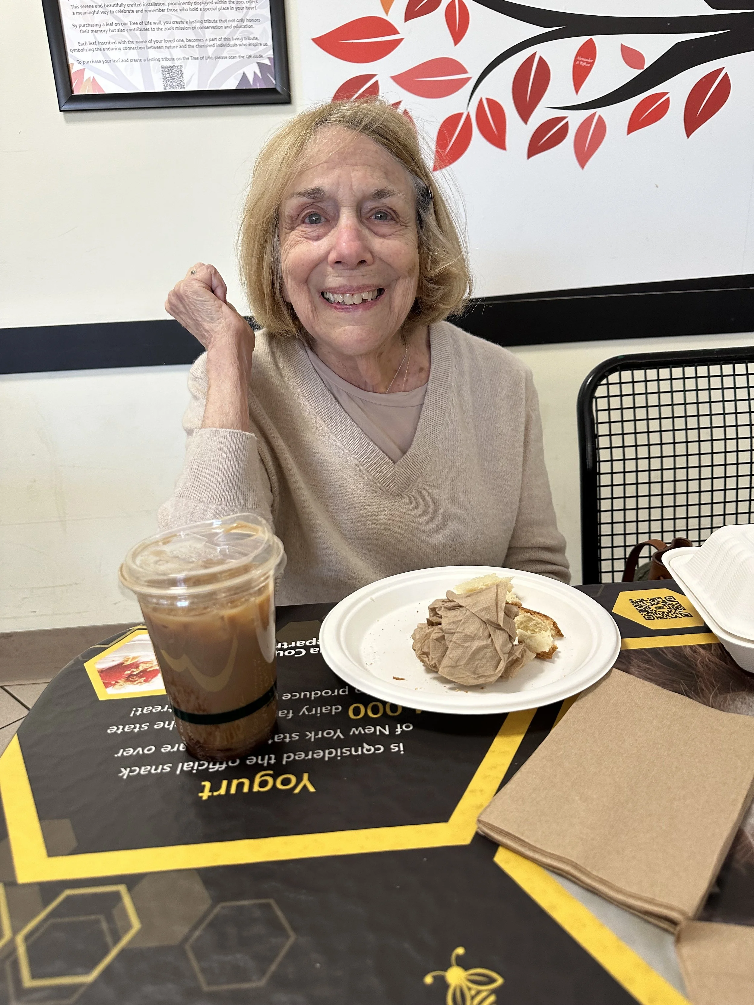 My pretty Mama walked the zoo loop and even the incline, I had to slow the girl down. And, she ate a turkey sandwich and drank an iced mocha, or as Gabe and I like to call it, “ a little cup of happiness”!
