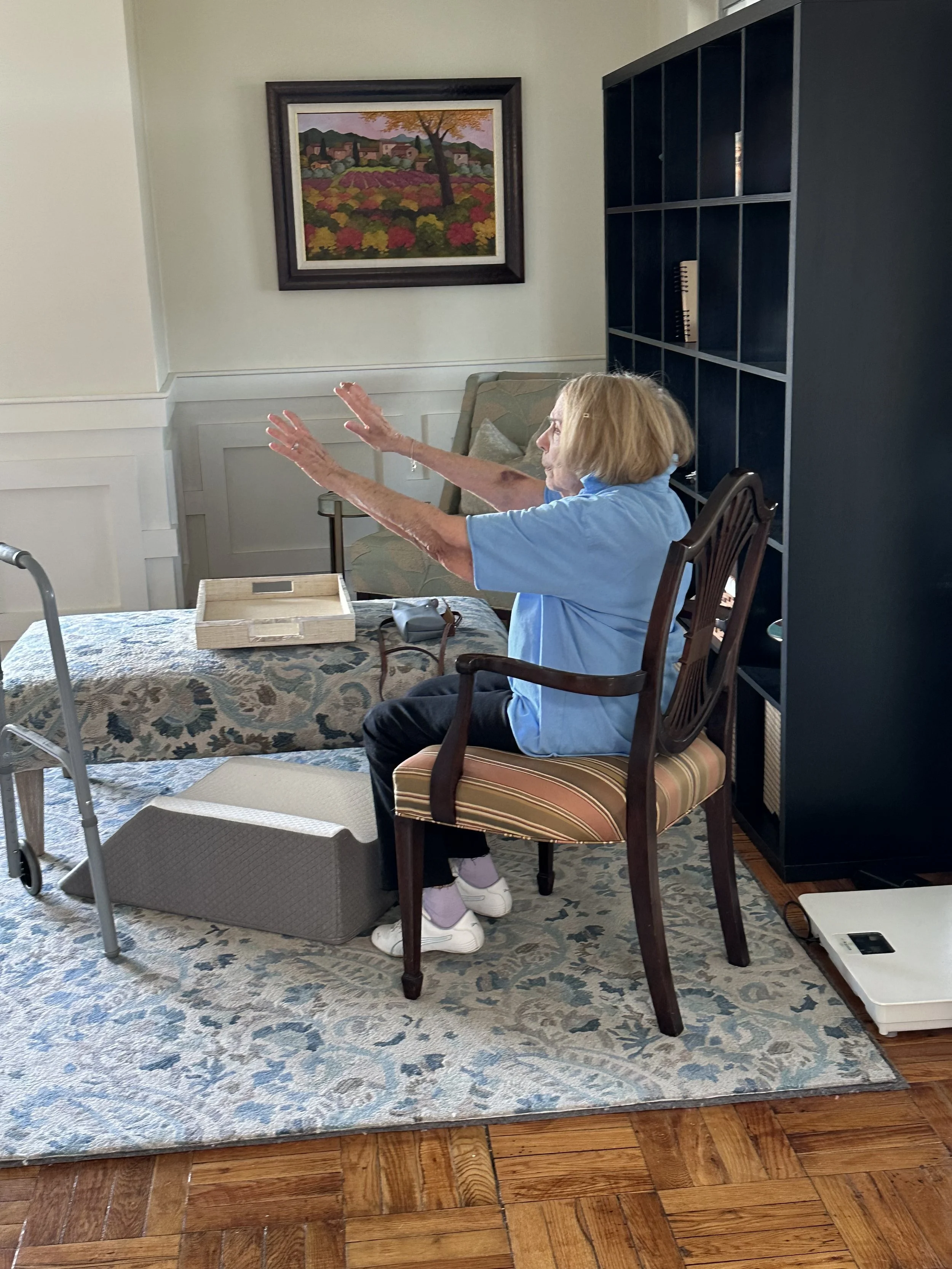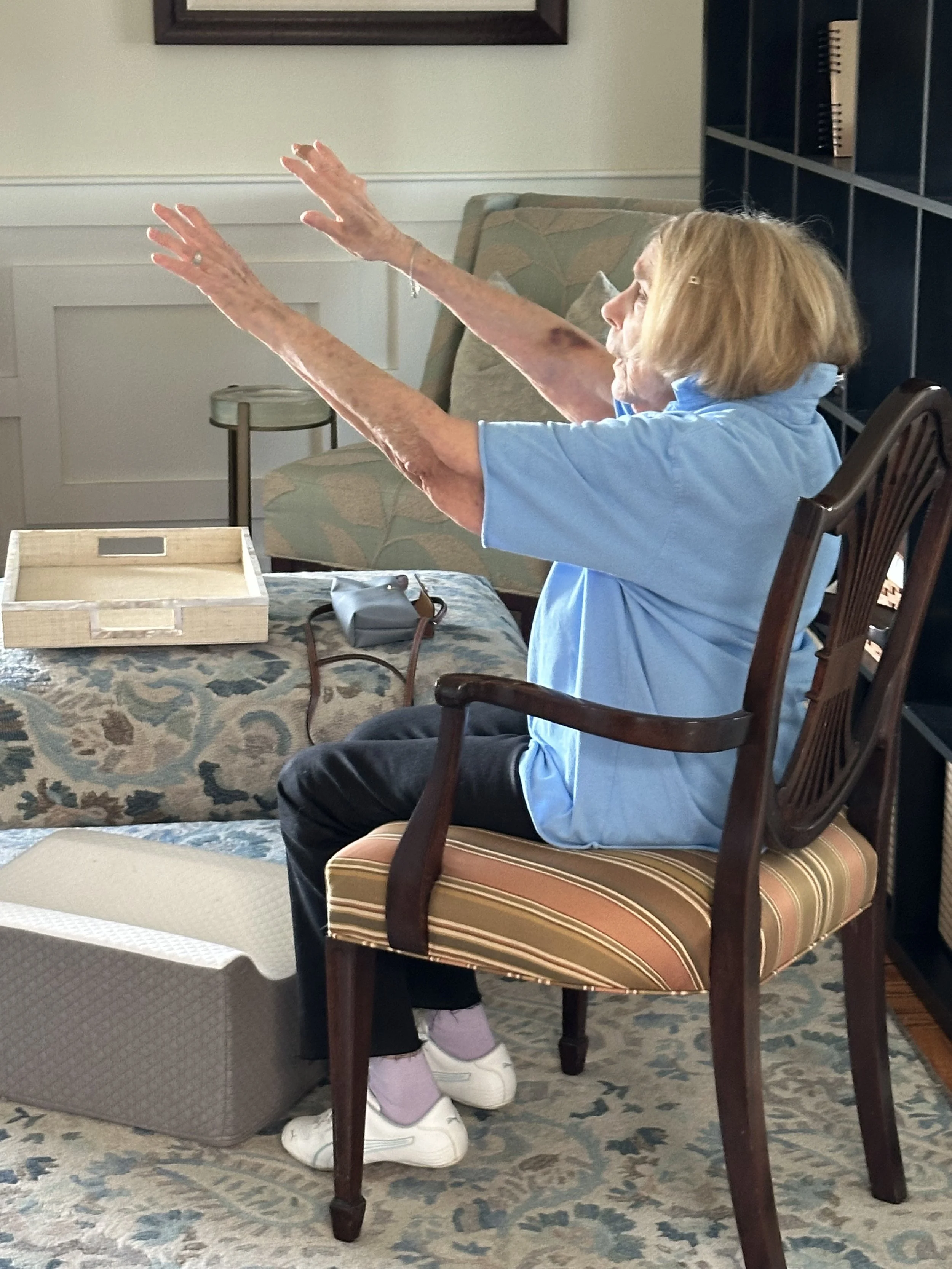 My mom is practicing Qigong in these pictures. As you see, it can be done in a chair. If you go to the link above you will find my favorite teacher, Jeff Chand. I practice every morning along with Pilates and my spiritual practice as a Jewish woman which is filled with gratitude.