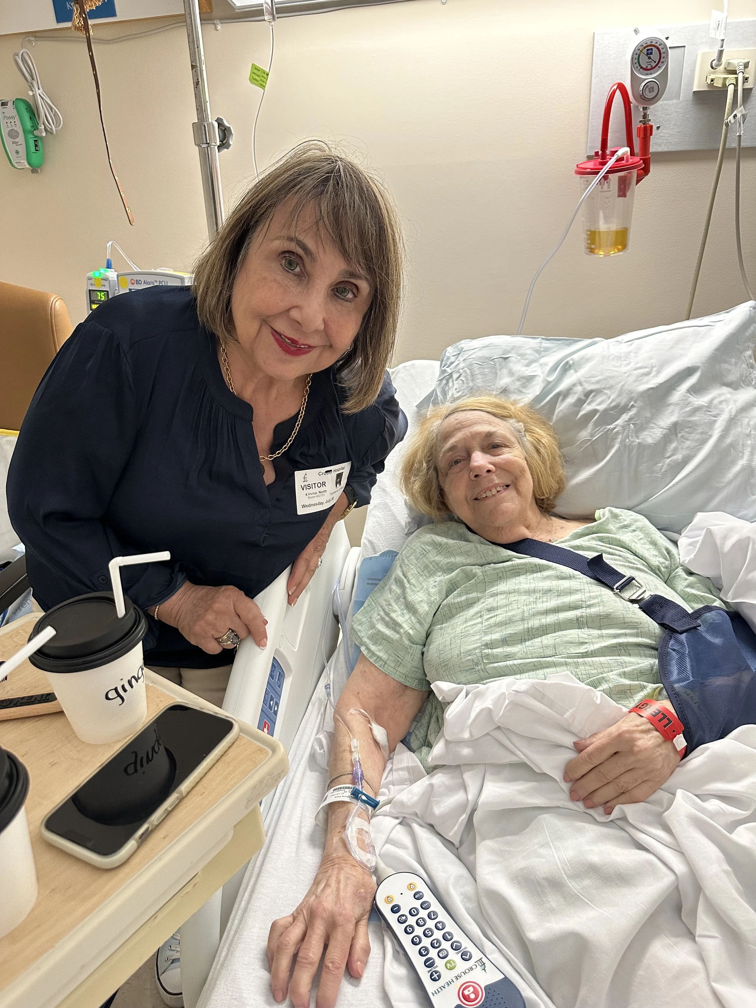 The beautiful lady in the middle picture with my mother is her girlfriend Toni who has been helping non-stop since she fell. She also picked me up from the airport and came to Crouse Hospital with me which is a place that I hate to go to. This is because although I was born there, it was where my father had his brain cancer surgery when I was 15 and I always think of that day when they were shaving his head and coloring the incision points with a fat black marker and I remember thinking how strange it was that they were coloring on his scalp with the same marker that I used to decorate poster board projects. He was making “Rocky” air punches to let my brother and I know that he was a fighter but he was also crying while the curly black locks of his hair fell into the little plastic tray and onto the floor.