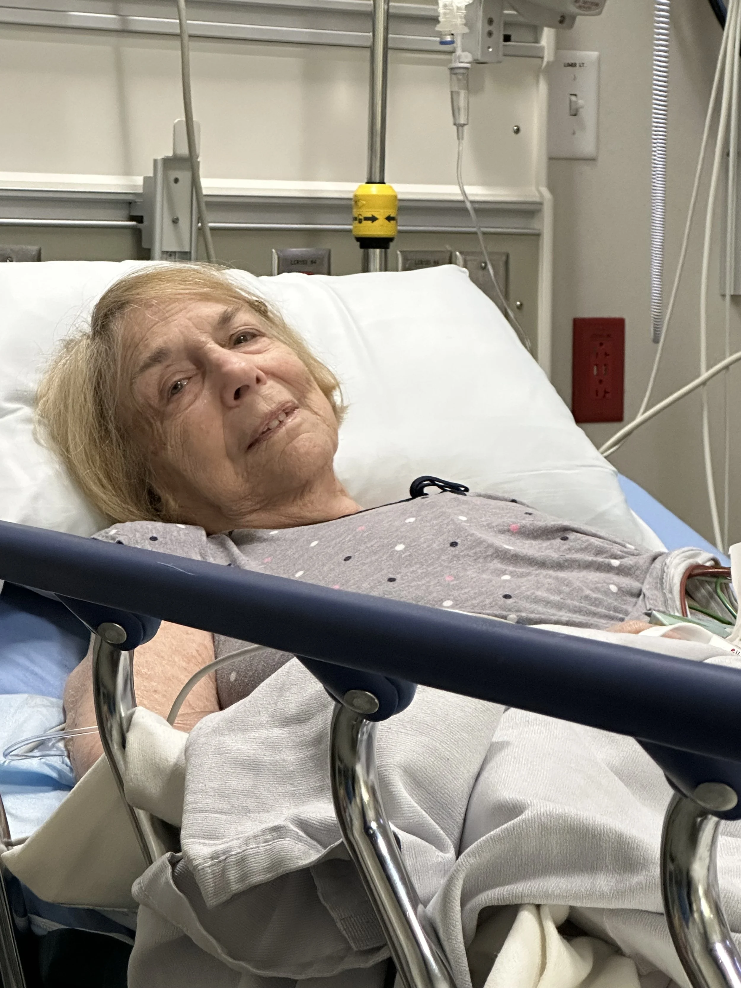 Yesterday I got an emergency alert phone call from the LIVELY alert system that she had fallen and the ambulance was on the way. I had spoken to her an hour earlier and she was fine. We were talking about mattresses for my new bed and she had just ordered me the same one she has. It was a “normal” morning for us. I said I would call her later and went to work. I missed the call because I turn my ringer off when I teach.